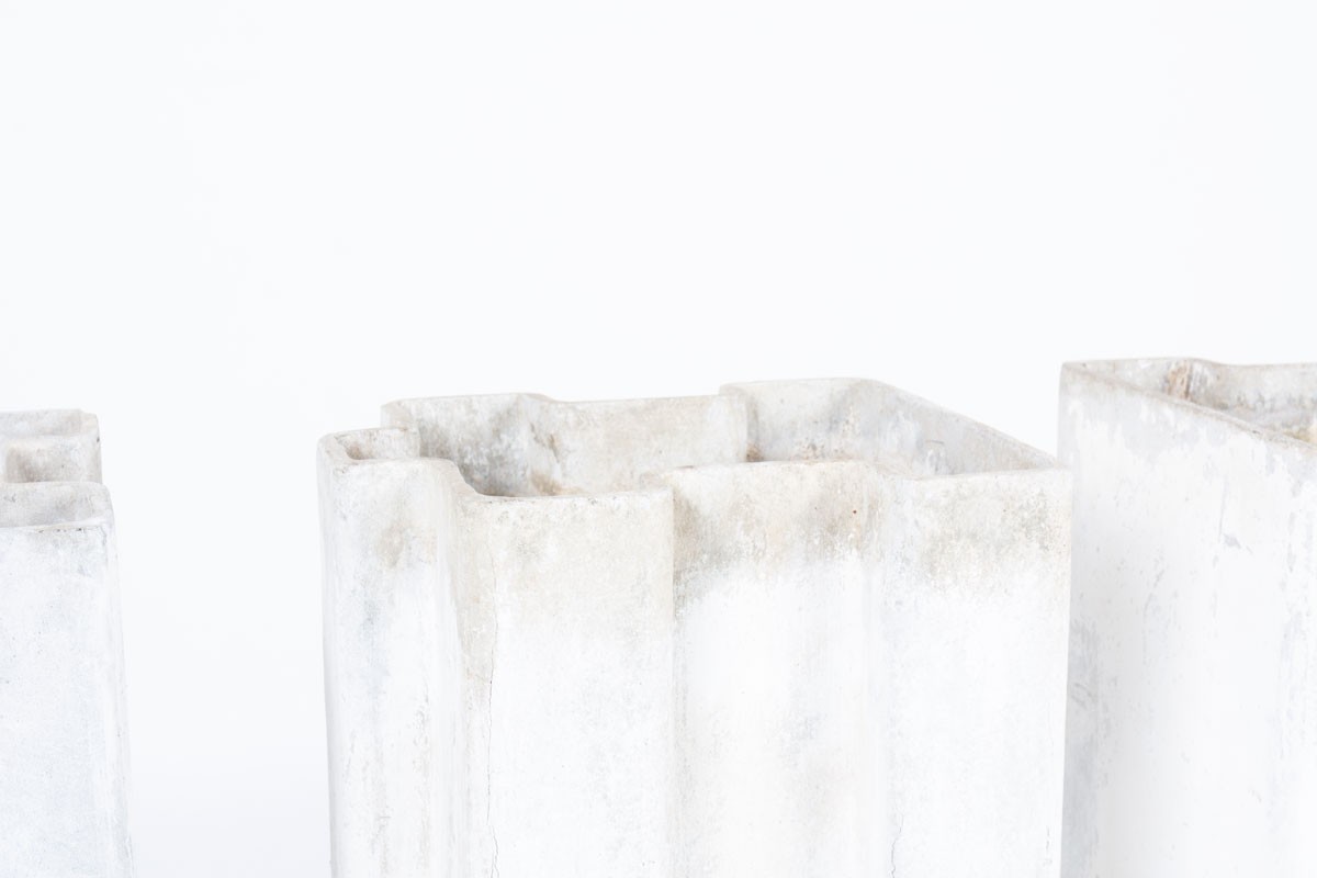 Both graphic and timeless, these planters are suitable for indoor and outdoor use. Displayed together or individually, they bring an architectural and sculptural presence to a garden, terrace, or interior space, making them a highly desirable set for collectors of mid-century design.