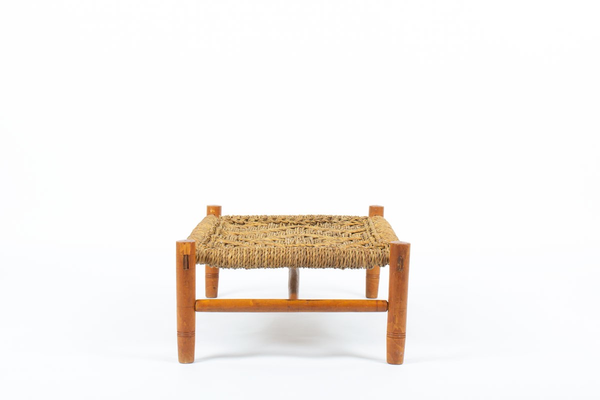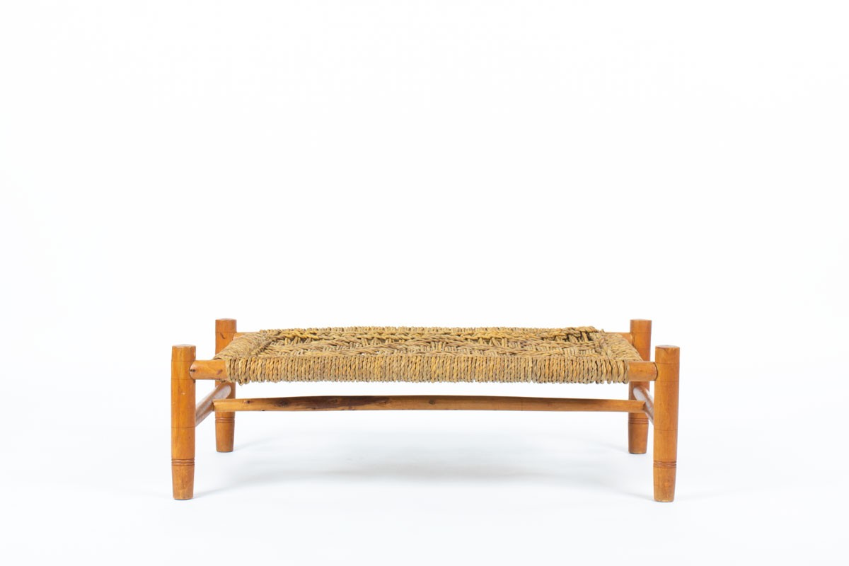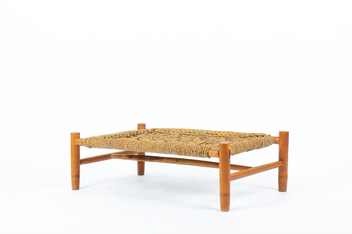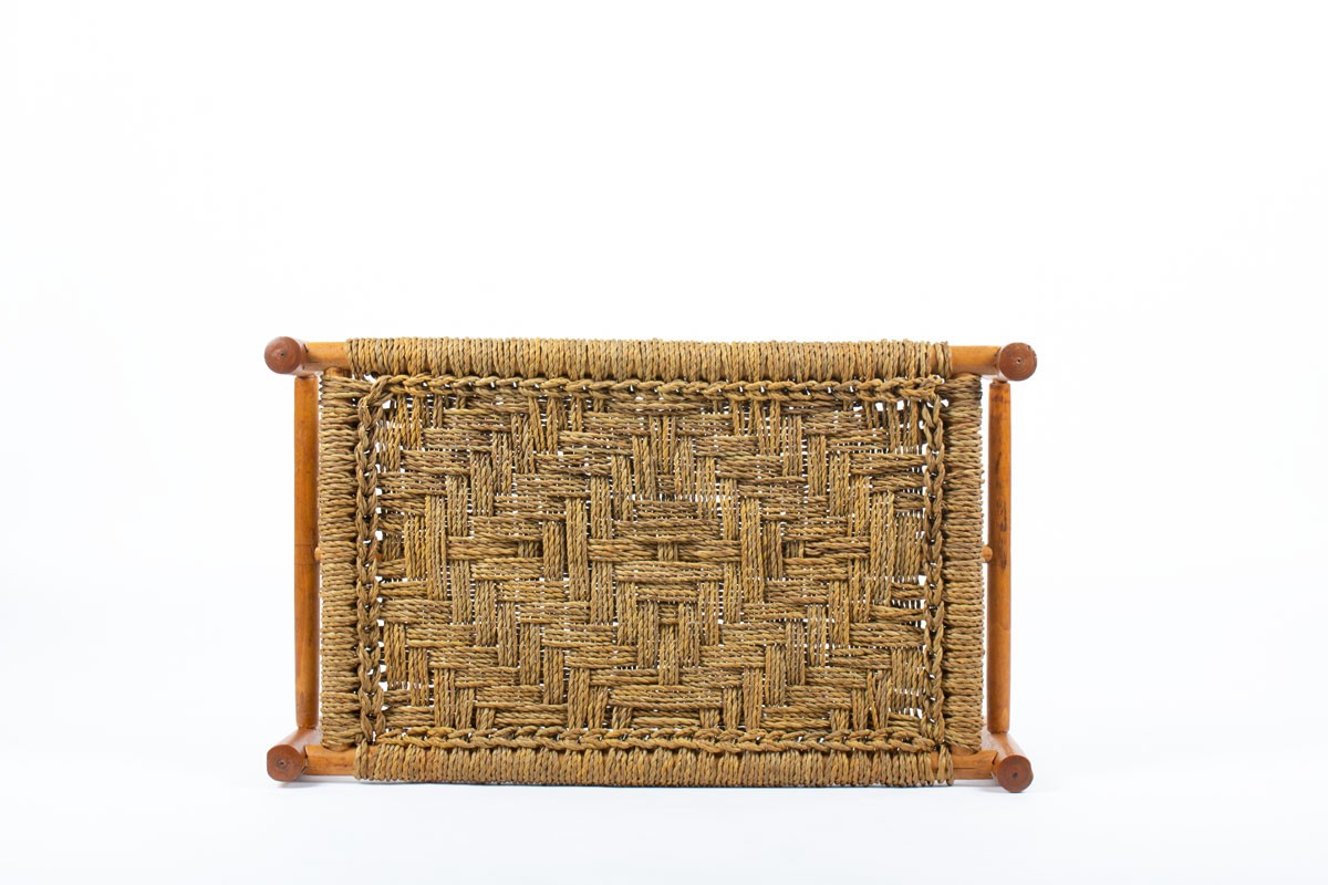 Adrien Audoux and Frida Minet coffee table in straw and natural wood edition Vibo 1950