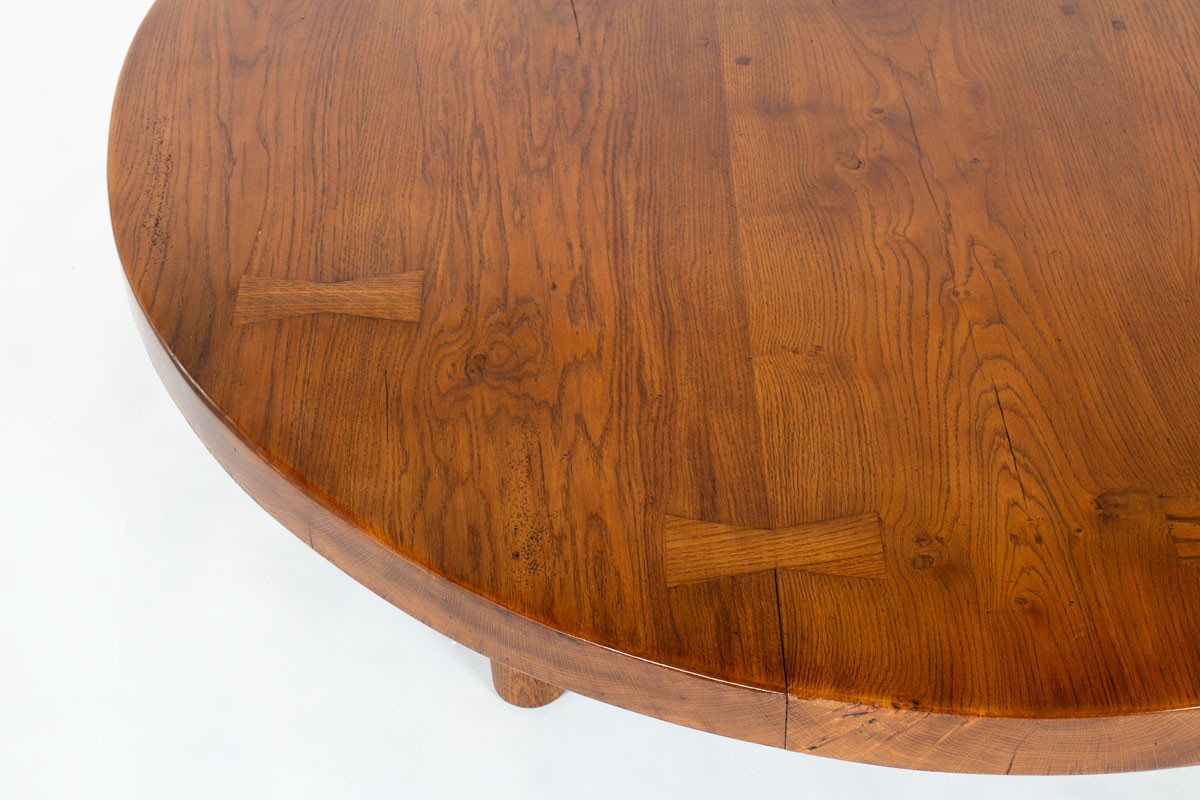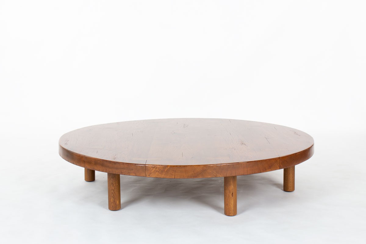 Round coffee table large model in oak 1950
