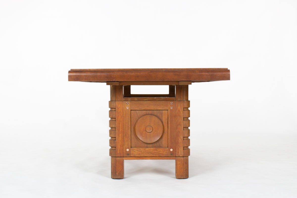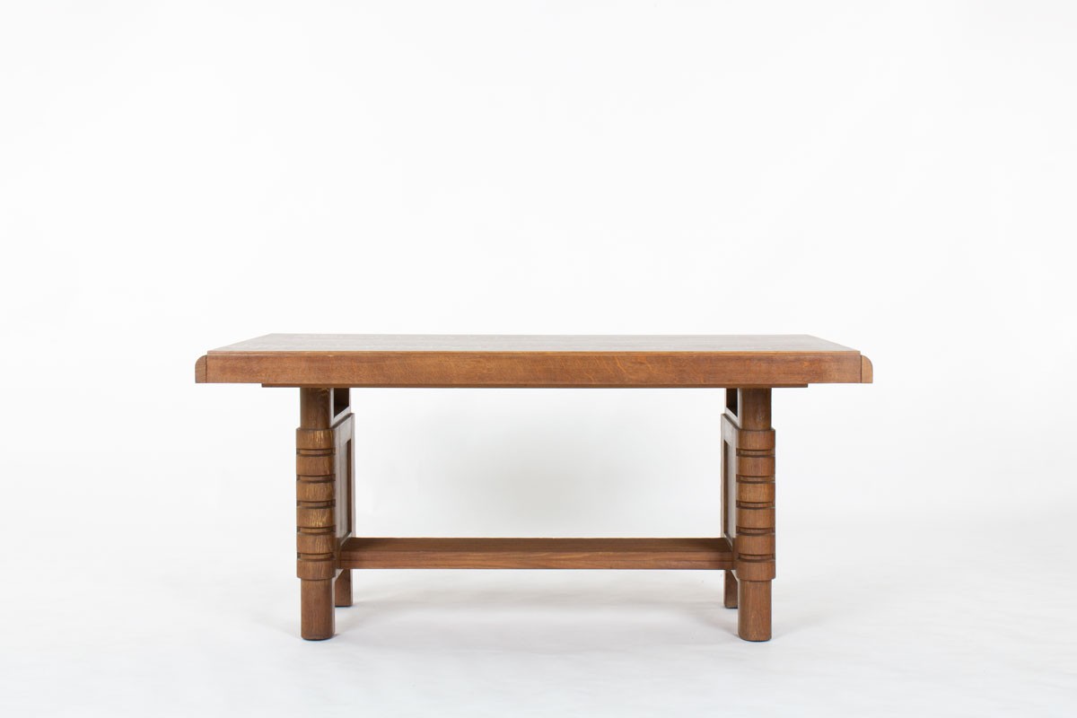 This oak Art Deco table, inspired by the work of French designer Charles Dudouyt, embodies the decorative and architectural spirit of the 1930s.