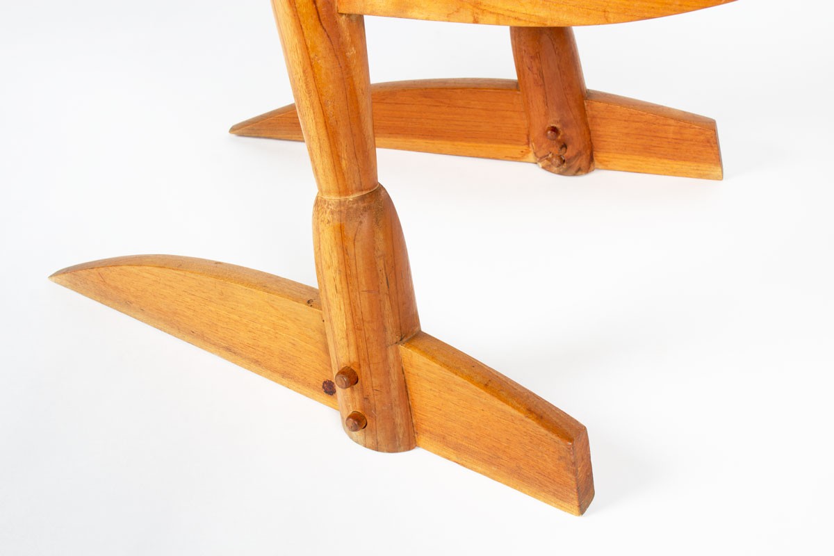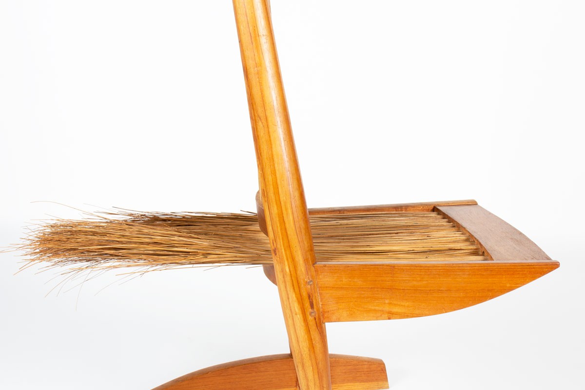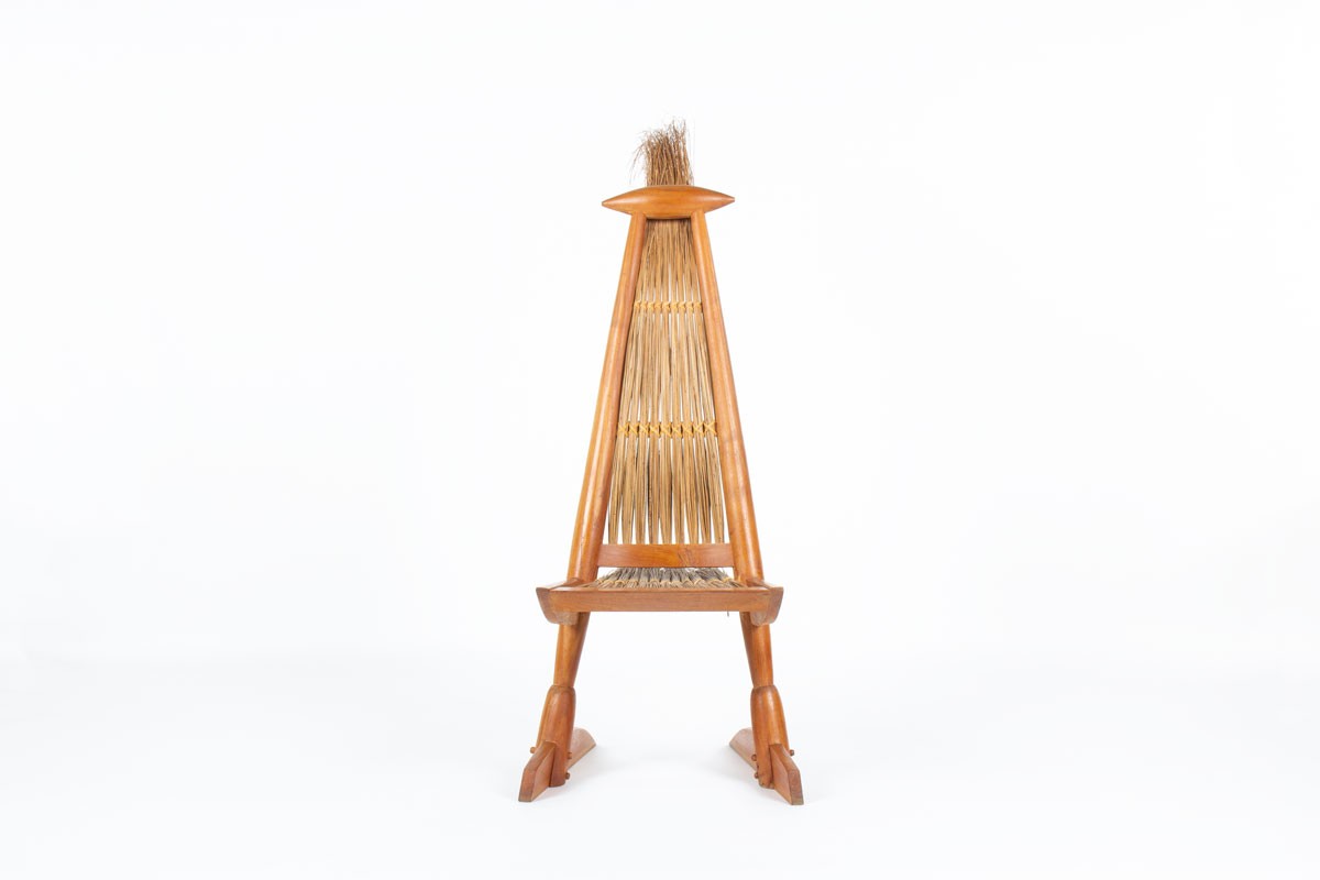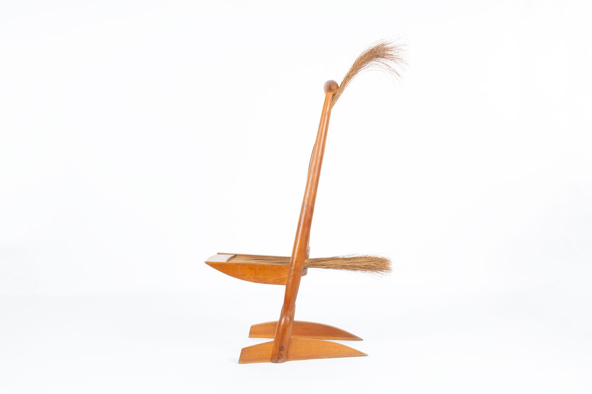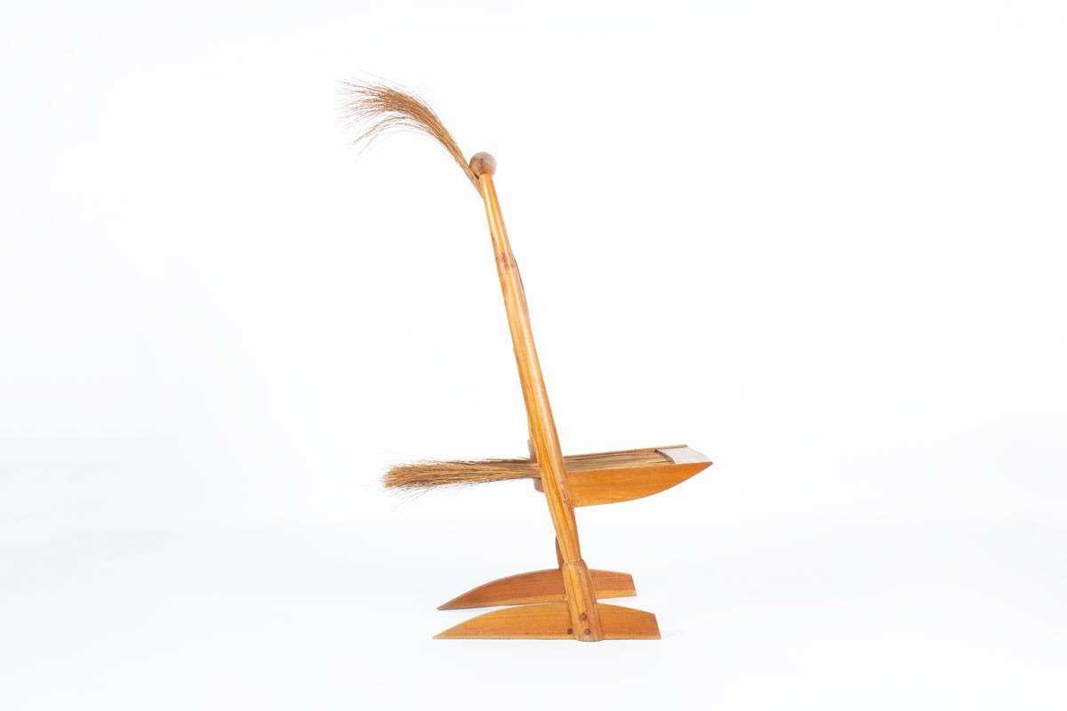 This armchair is, at first glance, exceptional, unique, never seen before and it attracts attention! It was made in France in the 1980s. It is composed of a structure in blond elm, the back and the seat are in rattan.