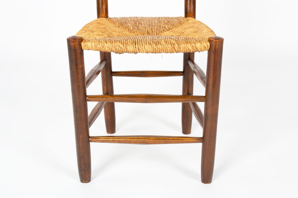Designed in the 1950s, this model perfectly illustrates Charlotte Perriand's approach, based on a quest for simplicity, functionality, and precision in the use of materials. The chairs are characterized by an ash wood frame with clean, balanced lines, highlighting the quality of craftsmanship and the meticulous attention to detail in the joinery.