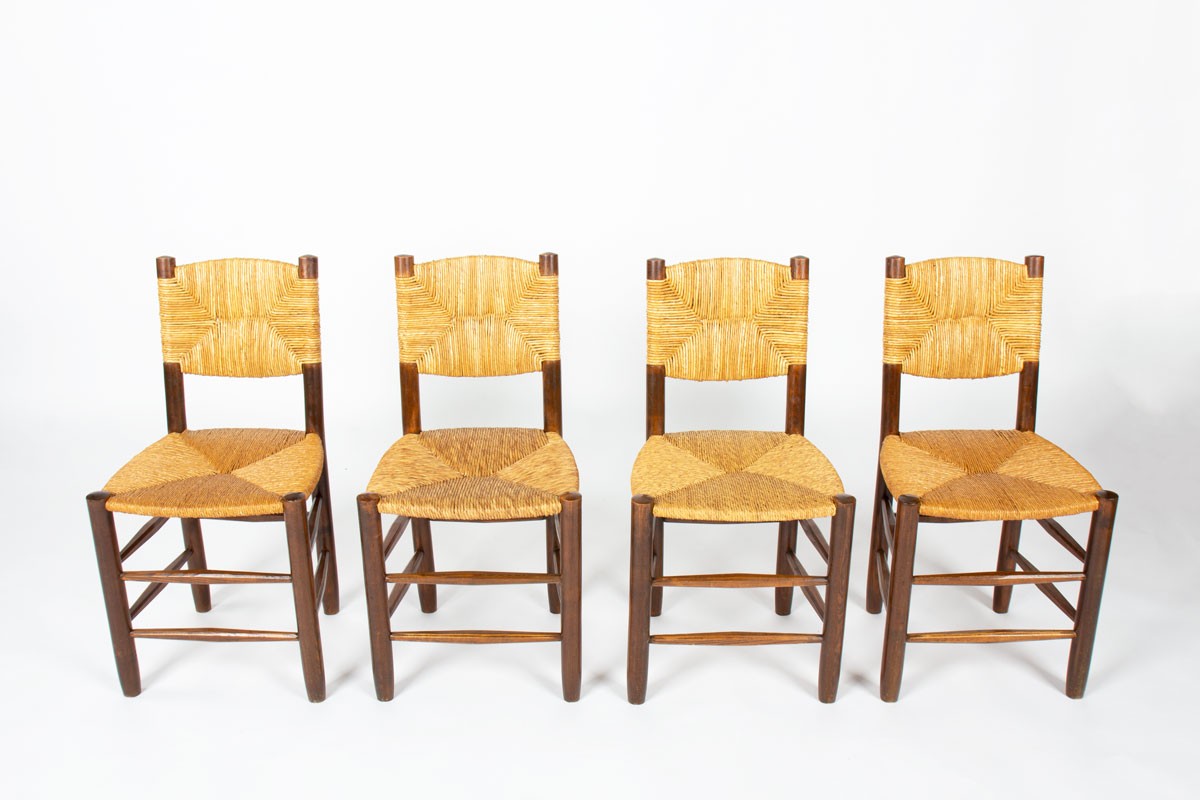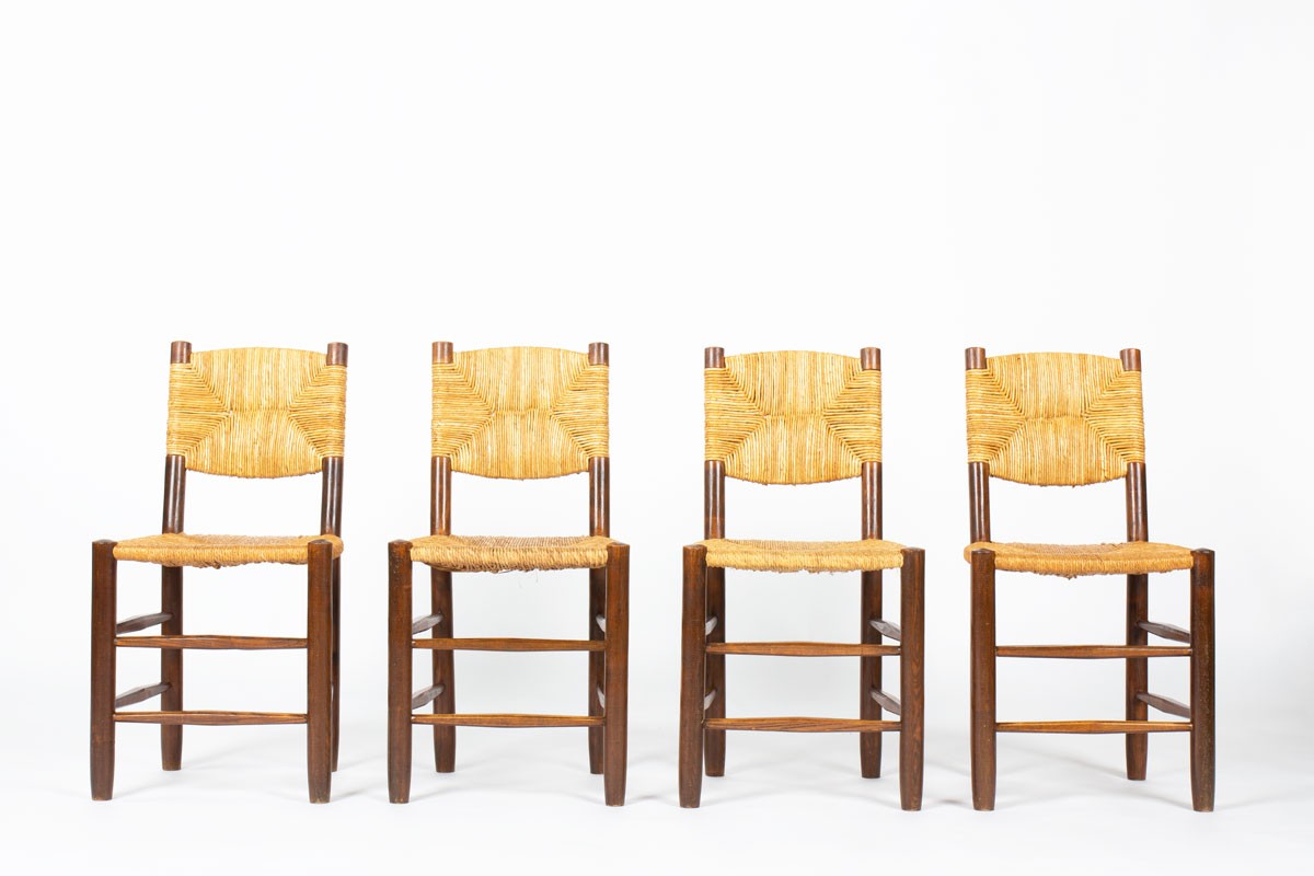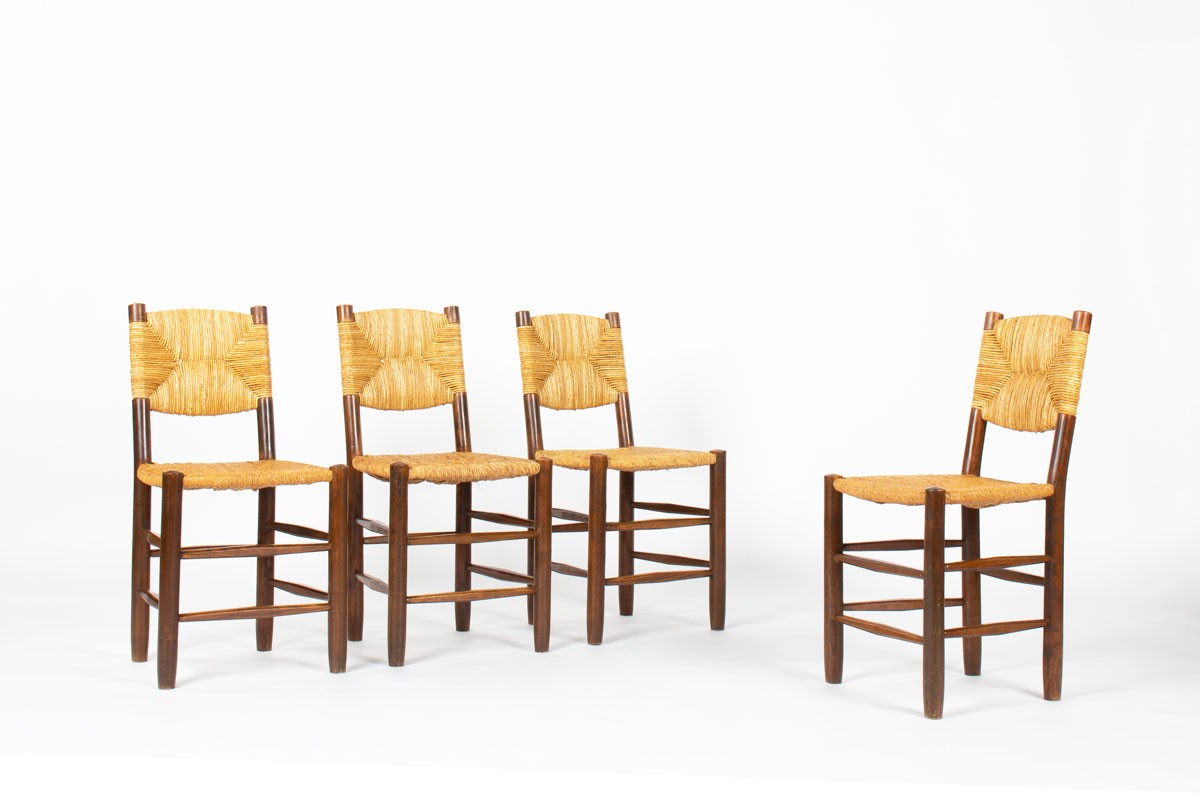 Chaises Charlotte Perriand modèle Bauche n°19 édition Steph Simon 1950 set de 4