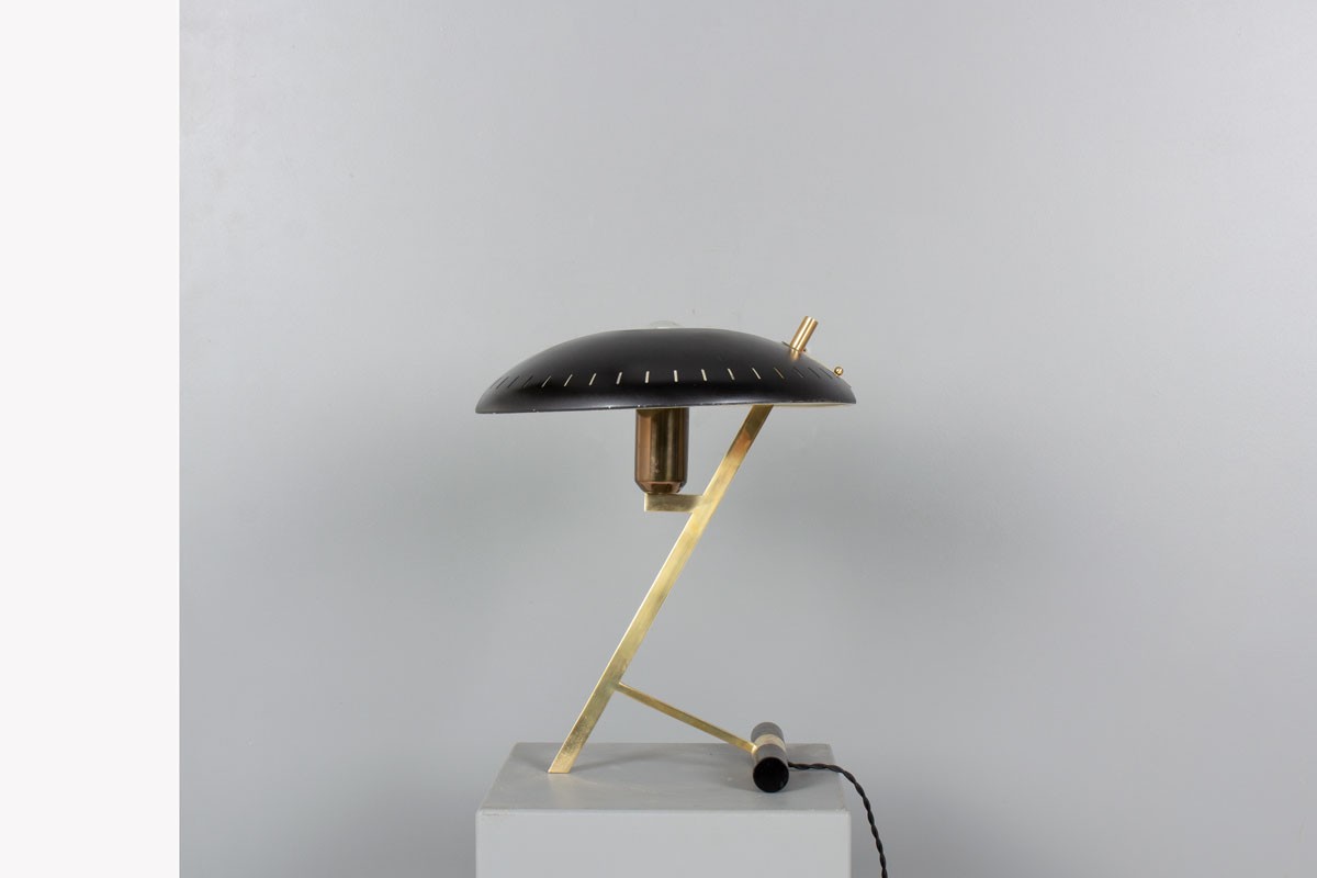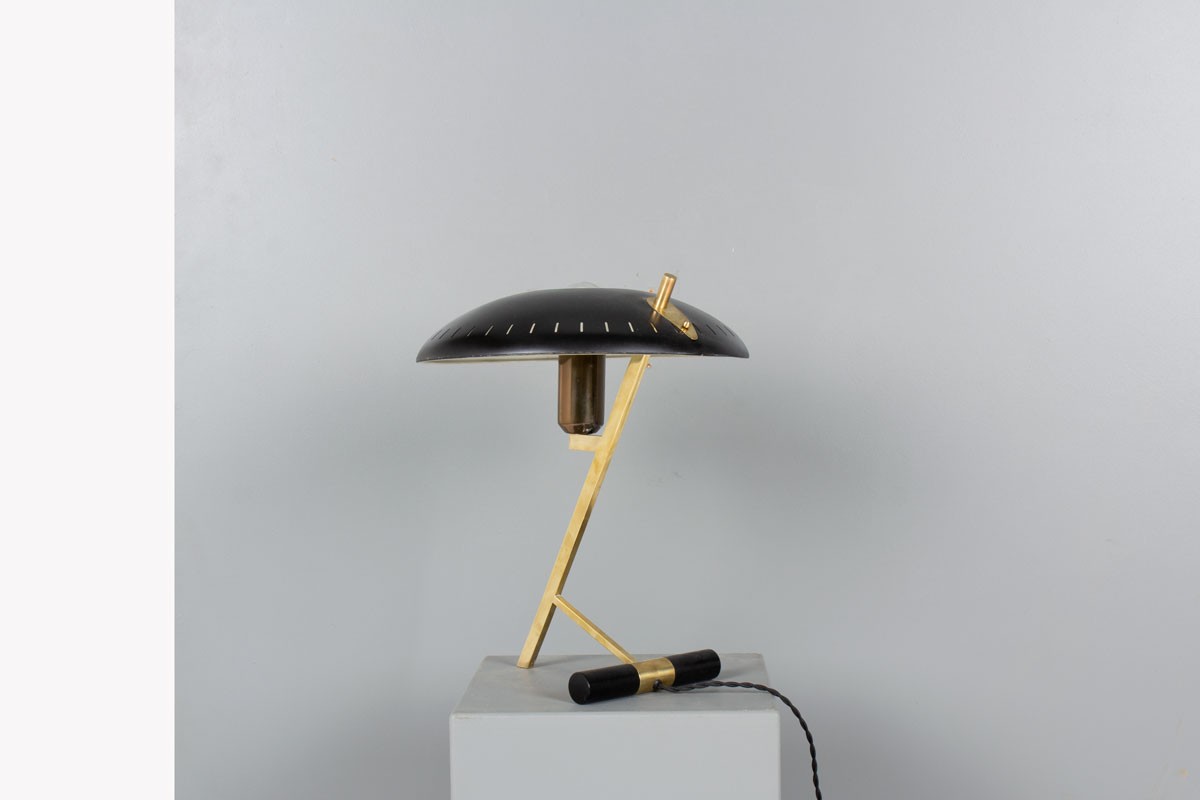 Lampe Louis Kalff modèle Z en laiton et métal noir édition Philips 1950
