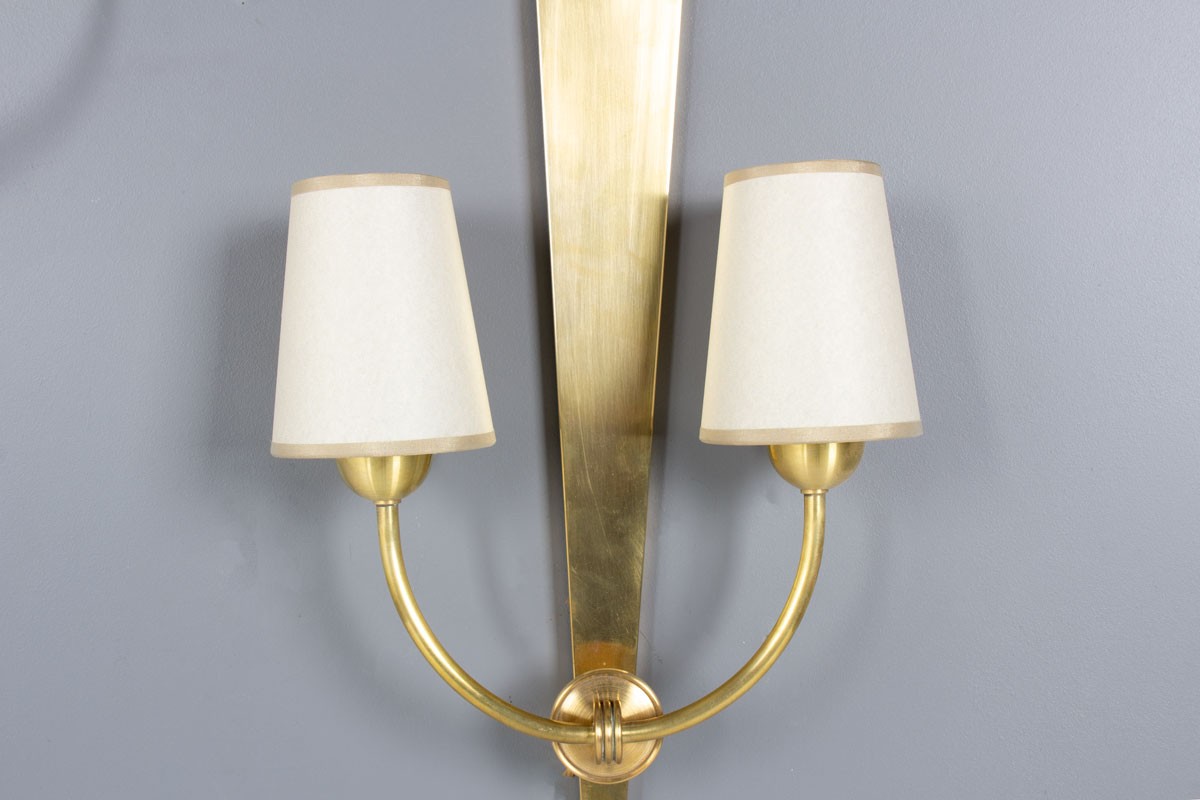 Appliques murales en laiton et abat-jour papier 1950 set de 2